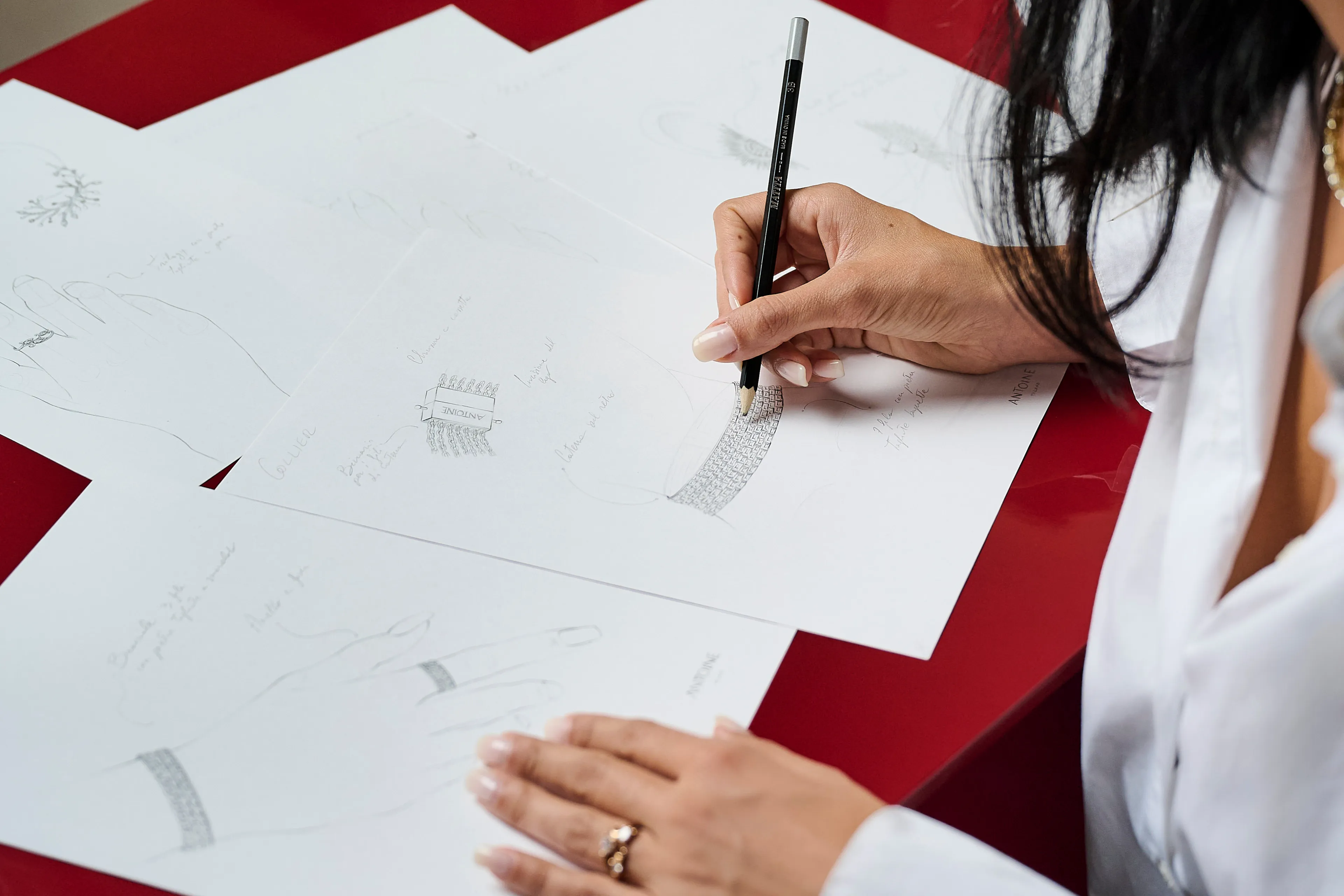 Antoine è uno spazio di creazione senza rumore, bellezza senza distrazioni. I gioielli non sono fatti per decorare, ma per riflettere. Ogni creazione dà vita a un dialogo intimo: tra chi disegna e chi indossa, tra luce e materia, tra quiete ed emozione.