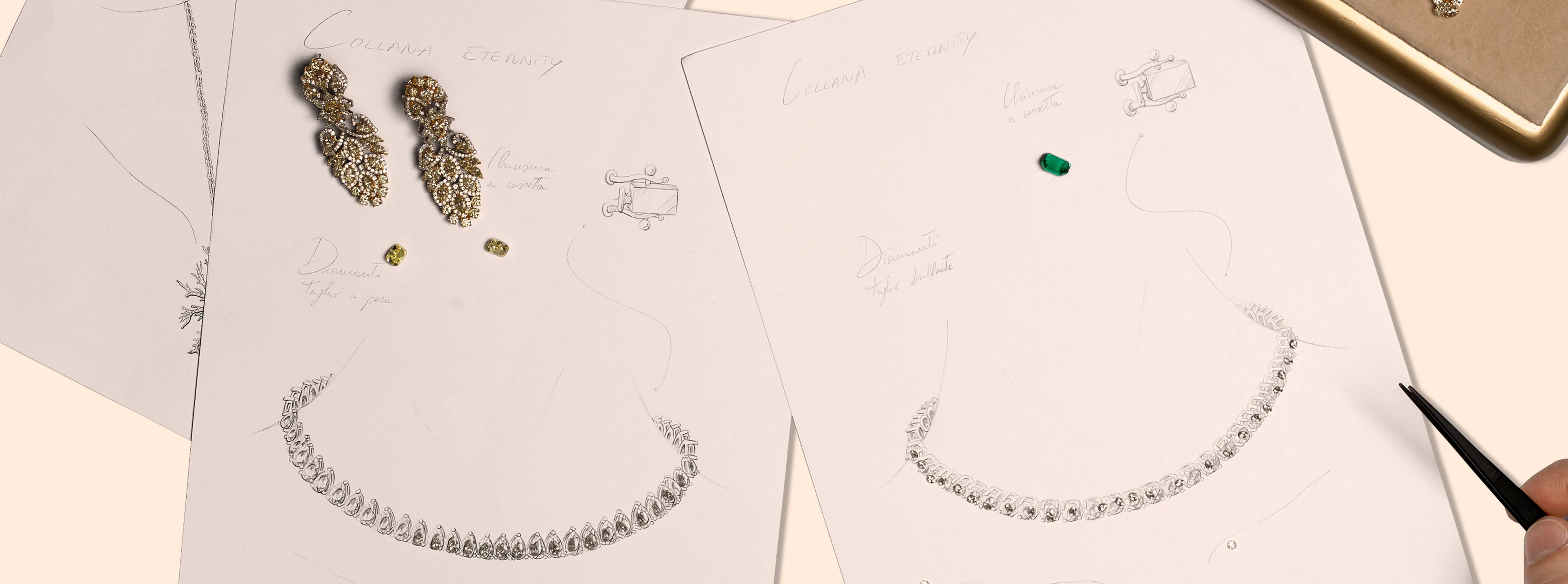 Tutto nasce da un’idea irripetibile. Ogni creazione prende forma intorno a una storia, trasformandosi in un gioiello che riflette identità e desideri profondi. Dalla selezione delle gemme al design finale, ogni dettaglio parla la lingua dell’esclusività.
