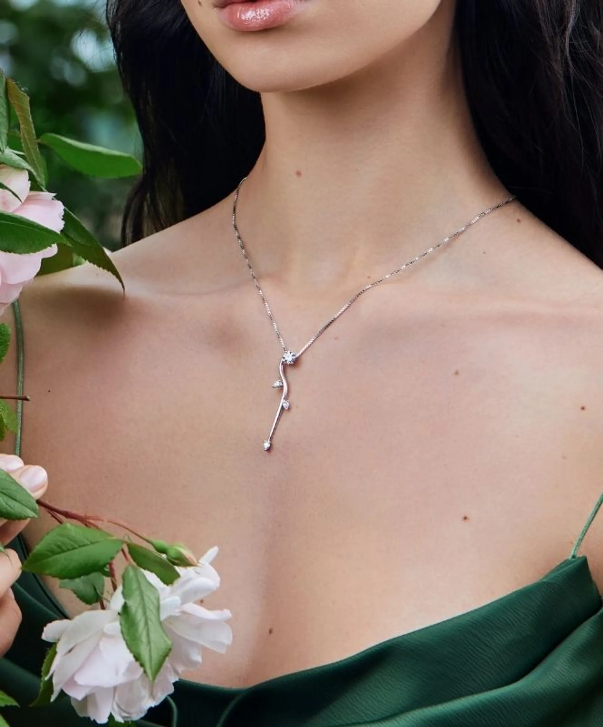 Una linea delicata che segue le curve del corpo e ne celebra la femminilità luminosa.