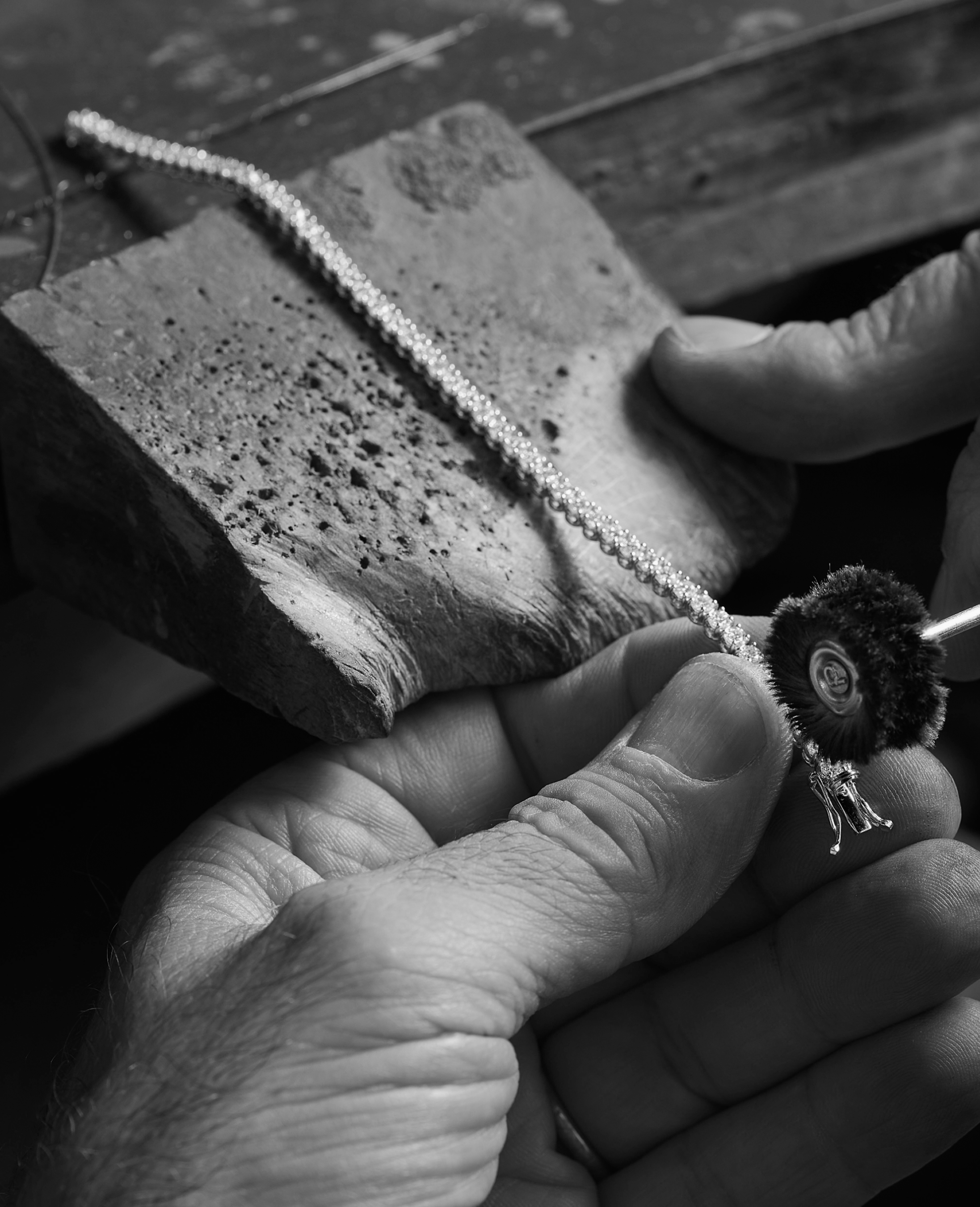 Le mani esperte dei nostri artigiani dedicano tempo, precisione e passione per modellare ogni dettaglio. Ogni curva, ogni incastonatura, ogni finitura nasce da dedizione, maestria e un’armonia che unisce tecnica ed emozione.