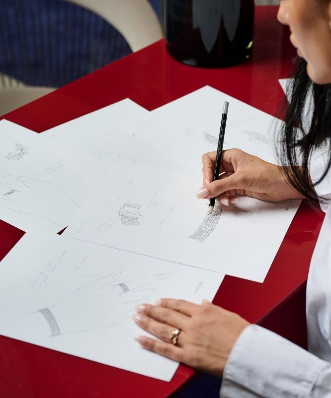 Qui prende forma l’idea del gioiello, attraverso ascolto e comprensione delle storie e dei desideri che lo rendono unico.